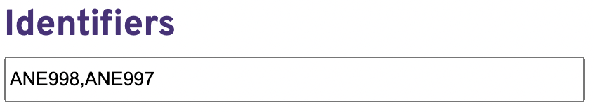 1. Type your selections to the Identifiers box
